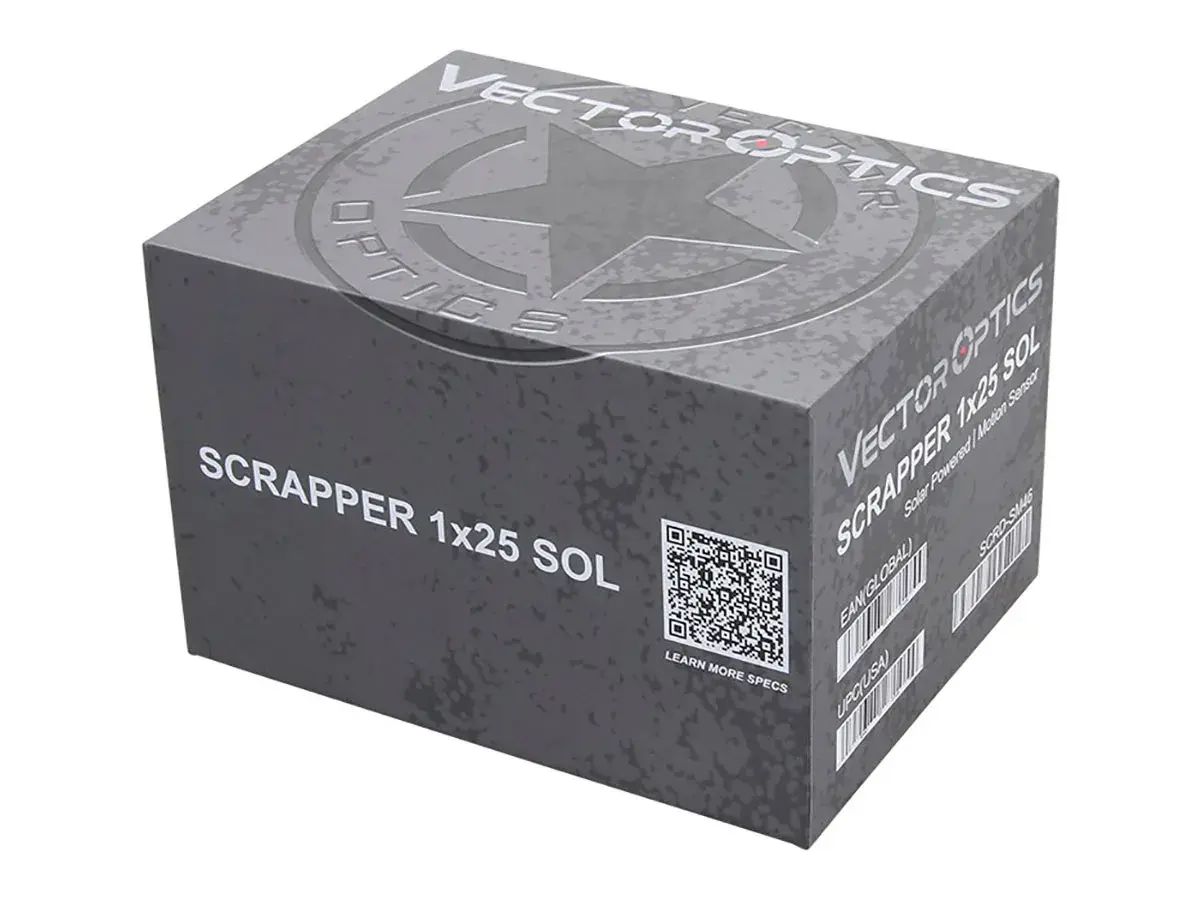Vector Optics Scrapper 1x25 Solar — закрытый коллиматорный прицел с инновационной системой MRS, обеспечивающей возможность выбора между точкой диаметром 2 МОА, кругом диаметром 40 МОА либо их комбинацией. Подходит как самостоятельное решение или совместно с приборами ночного видения. Преимущественно применяется начинающими и опытными охотниками, спортсменами. Надежность, функциональность и доступная цена делают его популярным выбором.